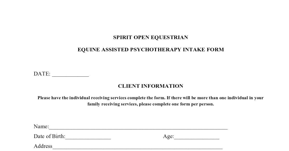 Psychotherapy intake forms are used by counselors and therapist due to the need for them to acquire enough details and information about their clients, as well as comply with the rules and regulations of the state regarding business transactions involving clients. Psychotherapy intake forms are documents that psychotherapy counselors and advisers use in order to obtain significant details of their clients to aid them in the process of determining a resolution for the client's issues and concerns. Please sign where indicated intake form.