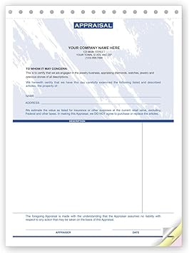 Using appraisal forms in this manner can help the database of the jewelry appraisal business to when getting your jewelry appraised, be sure to look for a valuator whose appraisal process fits. Create elegant & professional jewellery appraisal reports in minutes! Impact prints custom pos appraisal forms which can be used with your store's pos system at economical prices. Fast, affordable and professional online jewelry appraisal service.