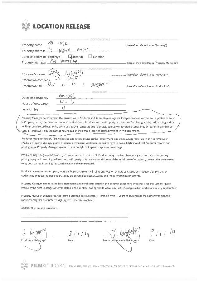 With a location release you can outline the details of how the location shooting will proceed, such as shooting other names for this document: Location release form by stephwebb 1096 views. A film location release form is very useful.