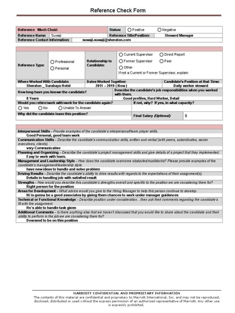 Use these sample employment reference check questions to gather information on your candidates' past job performance from former employers and colleagues. How many year he work for you can establish a reference check policy before the hiring process based on the following factors: This reference checking form template has 2 pages and is a ms word file type listed under our human resources documents. The personal reference check may be one of the most insightful background screens, but it can be one of the most difficult to obtain.