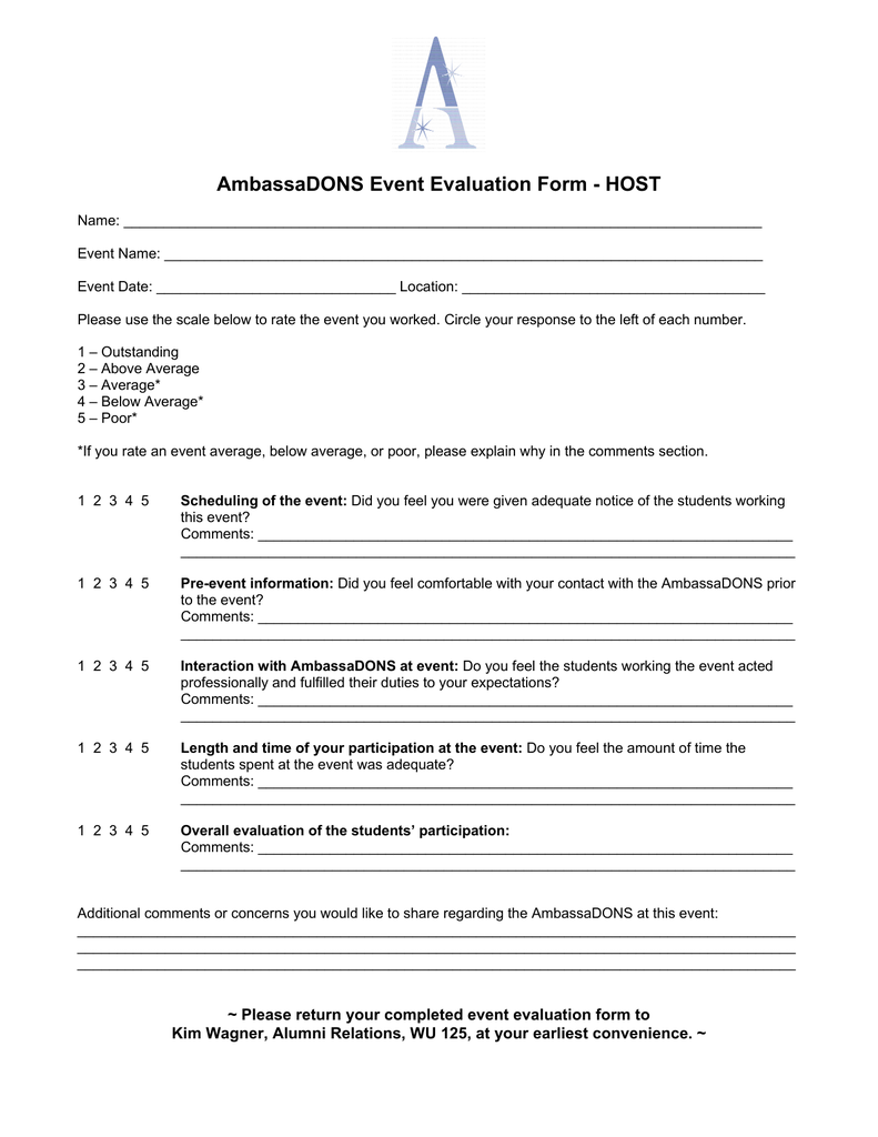 It measures only attitudes, not an improved approach to event evaluation: This file is a brief student cultural evaluation form by an unknown institute for feedback on a particular student related event. Community outreach project evaluation form it is the student s responsibility to deliver this form to the site supervisor and return the completed original form to the instructor. With this event evaluation form template, you can get the answer on the spot.