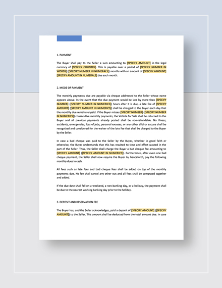 Pictures. A car sale template that includes payment terms when selling a vehicle. Both the parties (buyer and the seller) need to complete all the procedure of the purchase properly.